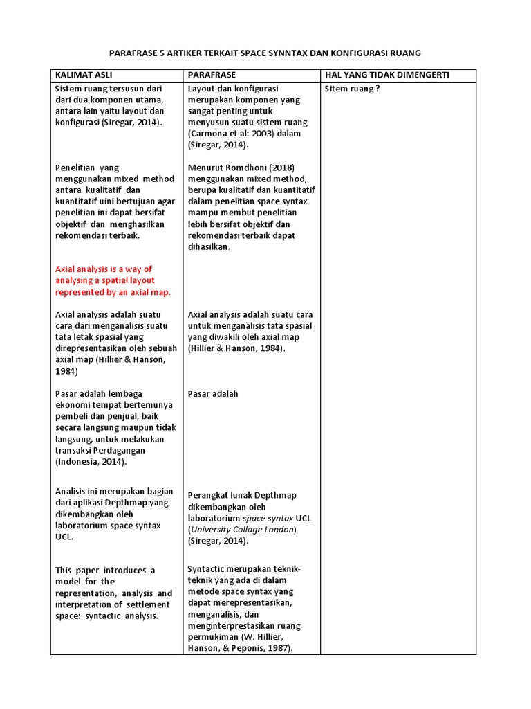 Pertama ubah struktur kalimat mulailah parafrase dengan mengubah letak kata-kata dalam kalimat tersebut. Kalimat parafrase yang berada antara plagiasi dan yang tidak Sangatlah sulit untuk membedakan antara ringkasan parafrase dan plagiasi.