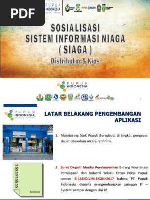 Aplikasi SIAGA ini akan diintegrasikan dengan sistem Kartu Tani sehingga memudahkan para produsen pupuk dan Pemerintah melakukan pengawasan pupuk bersubsidi di lapangan mulai dari gudang orodusen sampai dengan tingkat petani. Android app 34 50000 downloads Sistem transaksi dan pelaporan untuk penebusan dan penyaluran pupuk subsidi Urea NPK ZA SP-36 dan Organik dari. MataKitaco Barru Sosialisasi penggunaan aplikasi yg digelar oleh Pupuk indonesia berlangsung di warkop idola Kab.